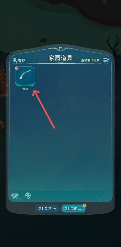 2、在该家园物品界面中,请选取钓鱼竿这一项。