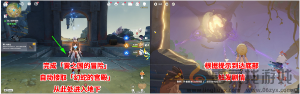 原神幻蛇的宫殿碎屑核心怎么解谜1、根据指引,到达底部,触发剧情。